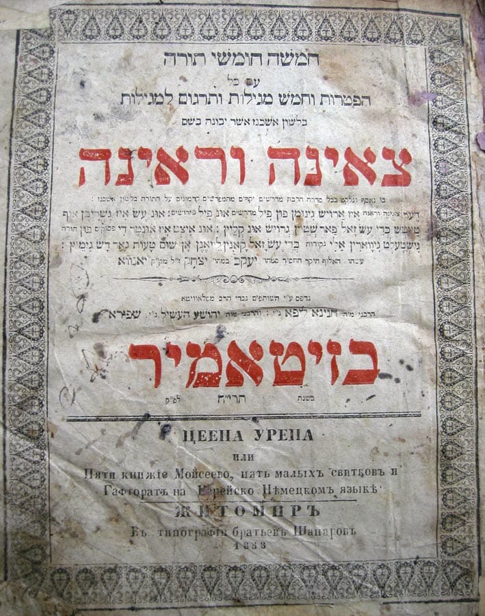 In the 1500s, Jacob ben Isaac Ashkenazi wrote the Tsene Rene to help close the education / religious gap between the sexes. Tsene Rene literally means, “go forth and see,” and it comes from a verse in the Song of Songs (3:11). The full verse is, “Go forth and see, daughters of Zion.”